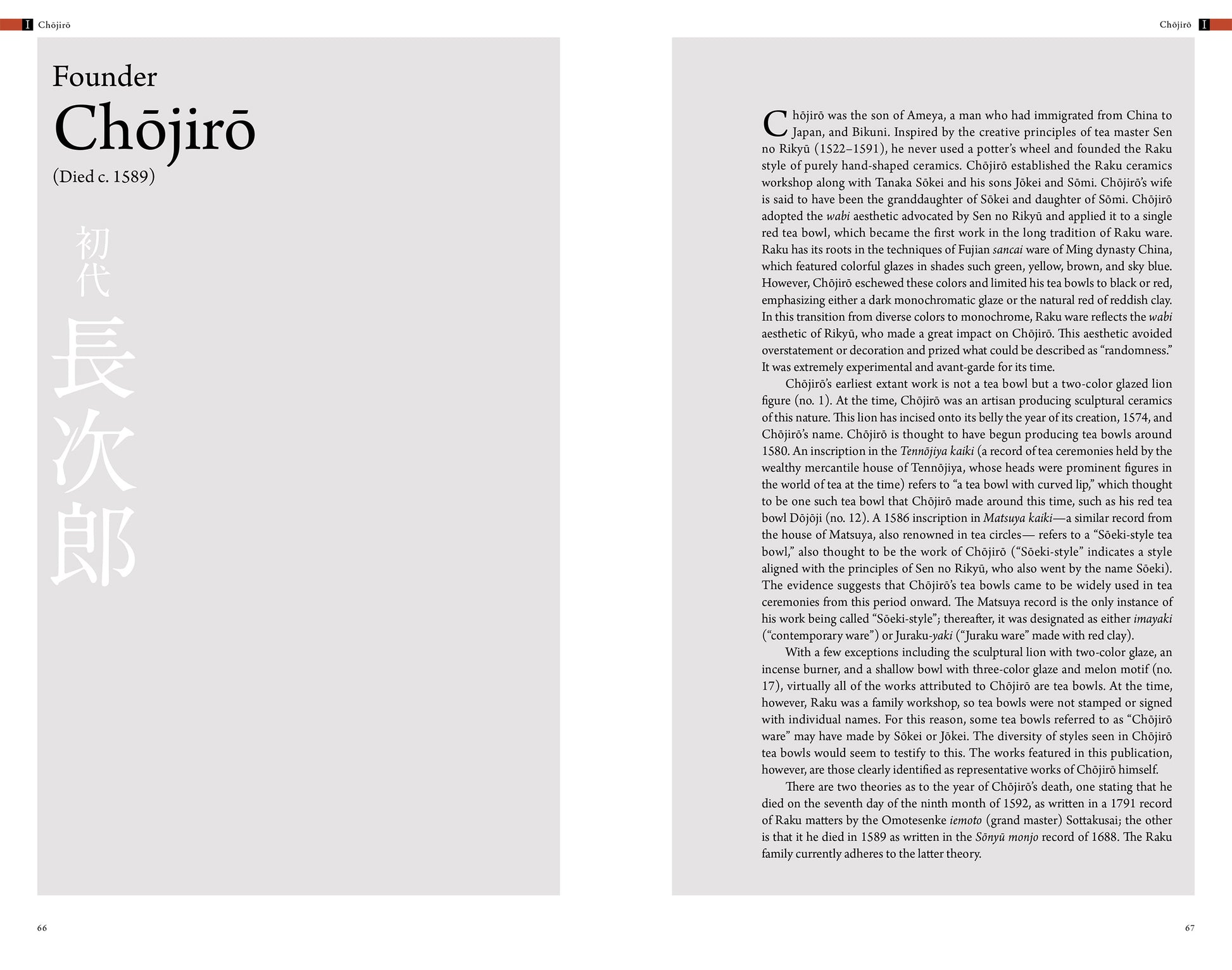This book is a revised edition of RAKU: A Legacy of Japanese Tea Ceramics, originally published by Seigensha in 2015.