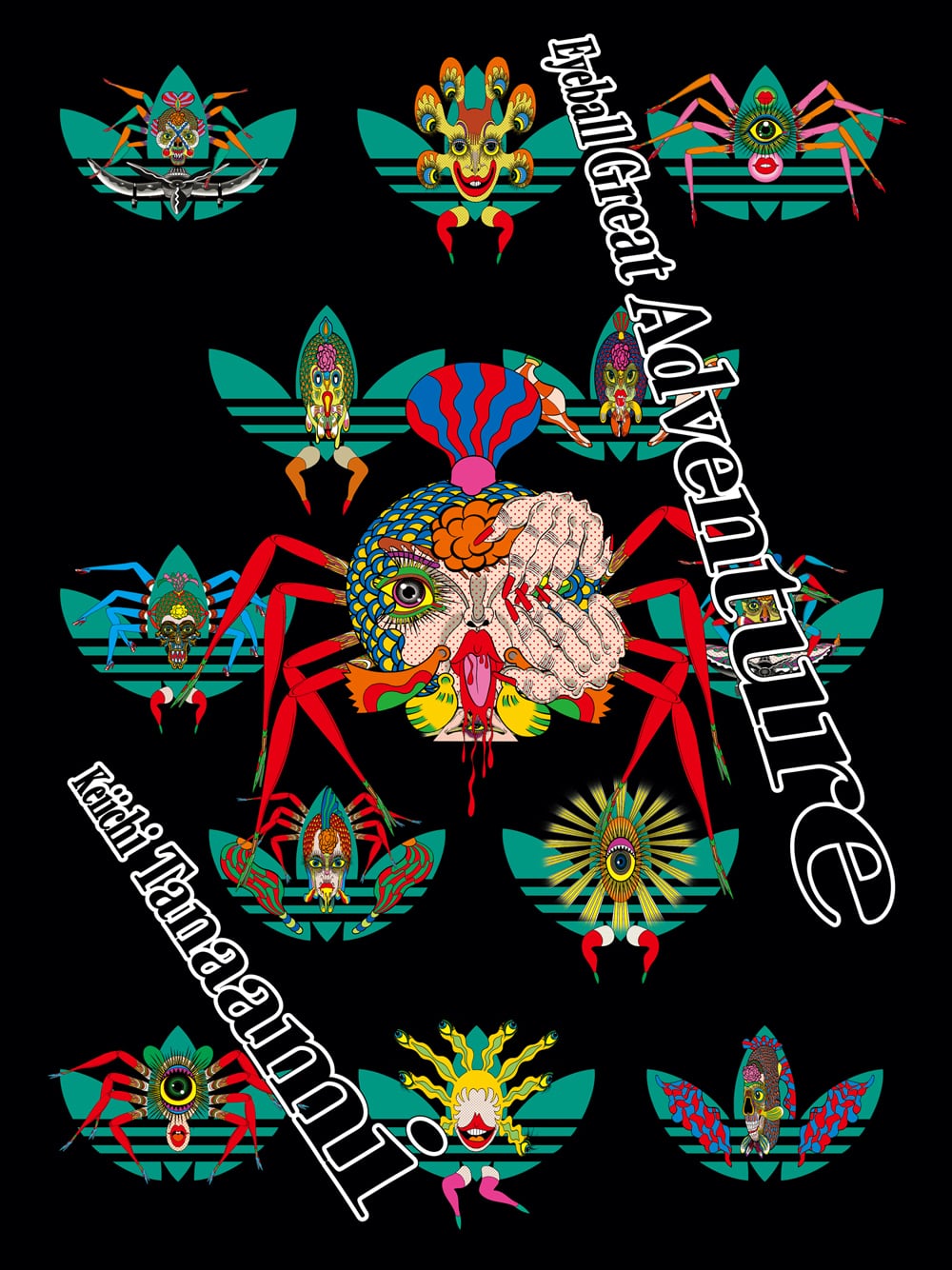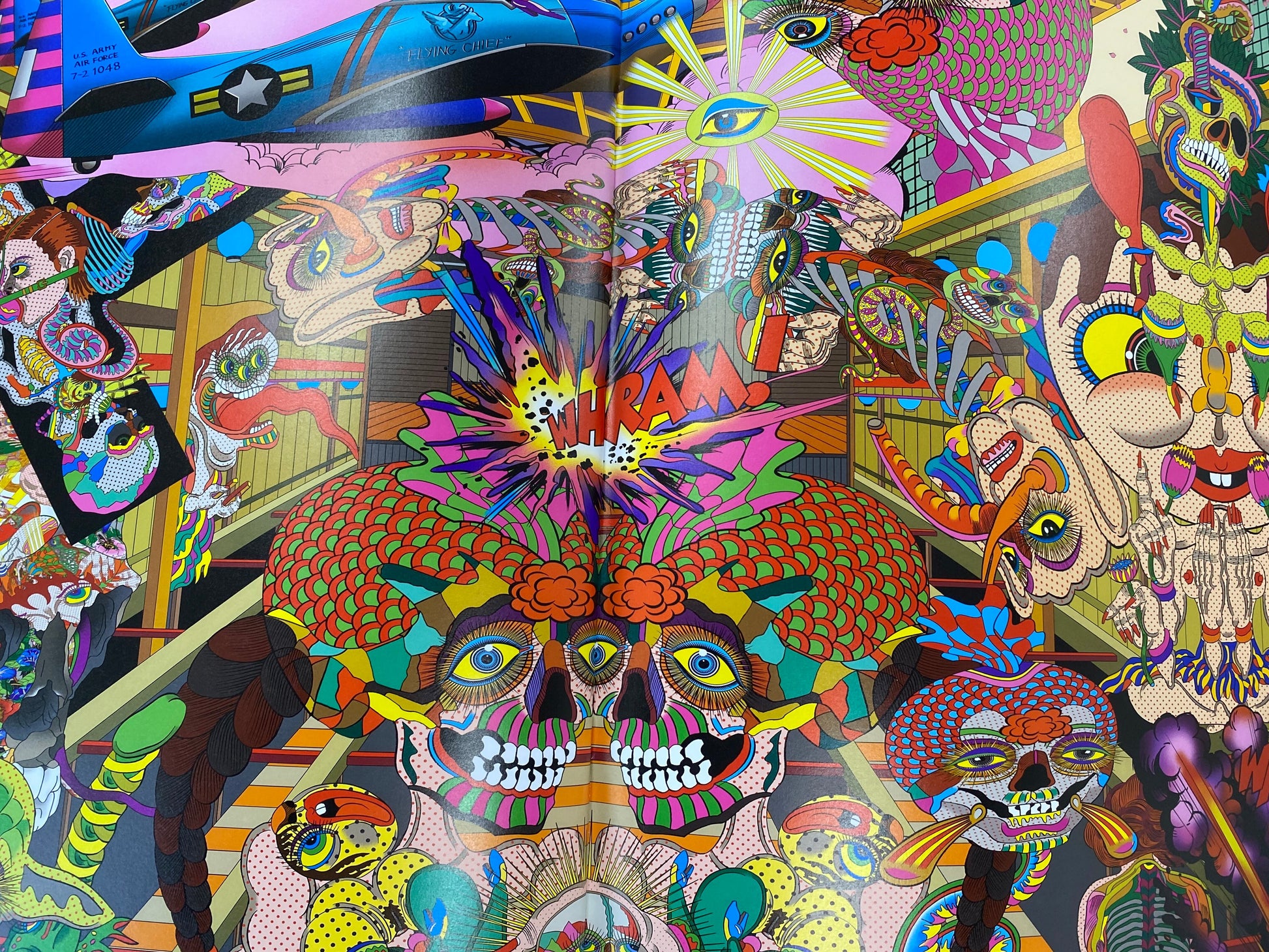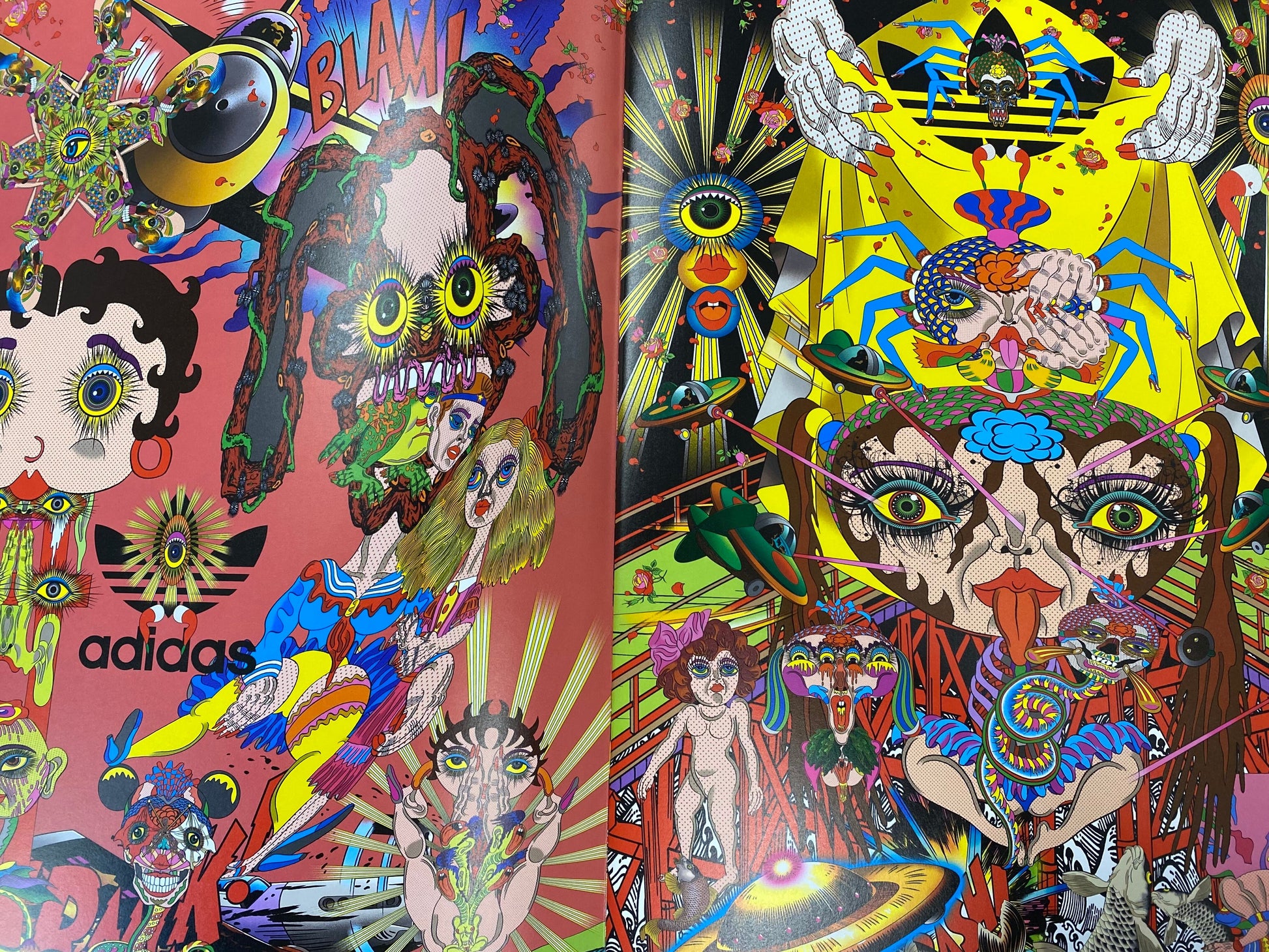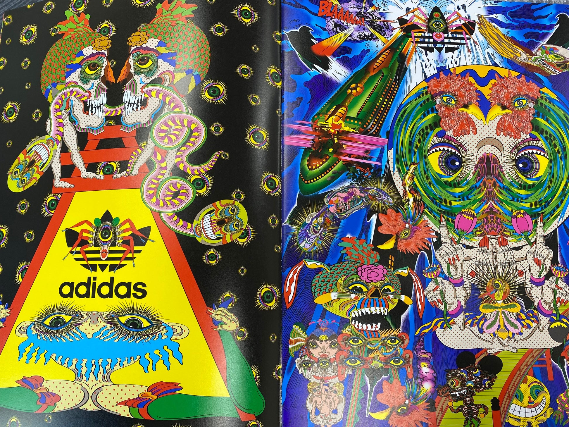 ‘Eyeball Great Adventure’ is a pummelling deluge of work by Keiichi Tanaami, served up with all the delicacy of a fire hose. The large-format book delivers loads more of Tanaami’s customary, refreshingly outlandish and profane visual imagery featuring skulls, fighter planes, eyeballs, robots, erotic figures, and brain-melting intensity. As one of the leading pop artists of post-war Japan, Tanaami has remained active as multi-genre artist since the 1960s, with works spanning graphic design, illustration, video, and fine art. Psychedelia-inspired forms, electric colours, and classic comic book elements feature heavily in his decidedly reactionary oeuvre. Includes works presented at the solo exhibition “Tanaami × adidas Originals.