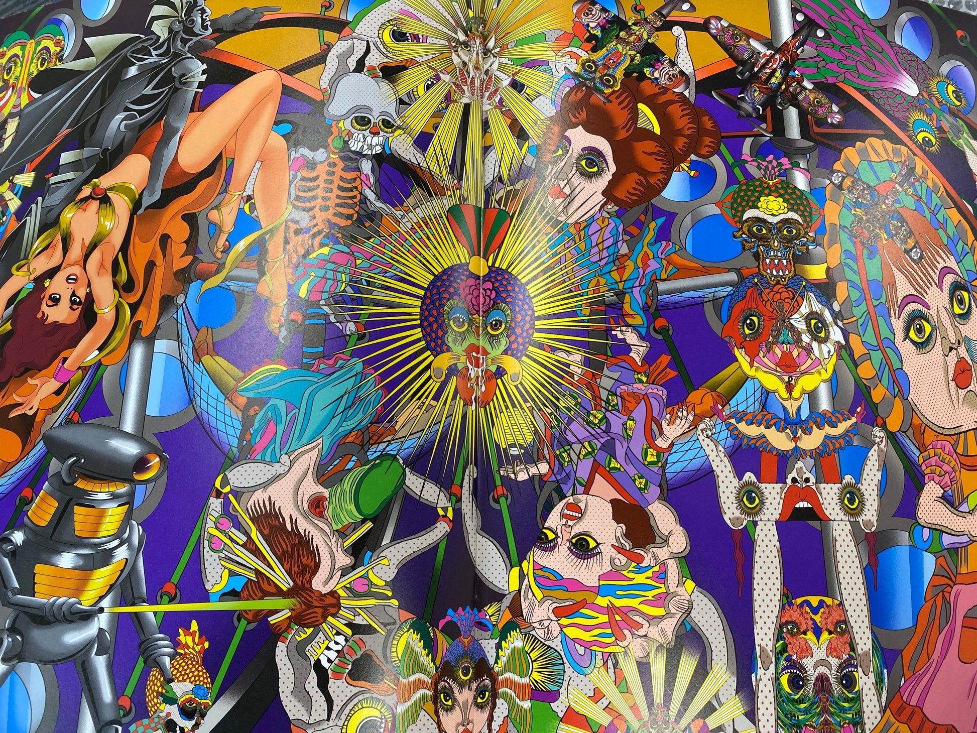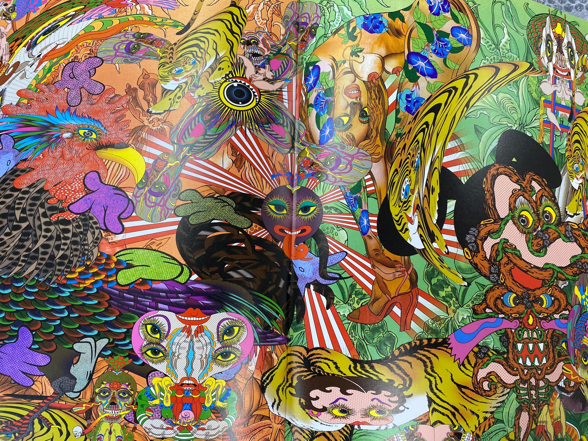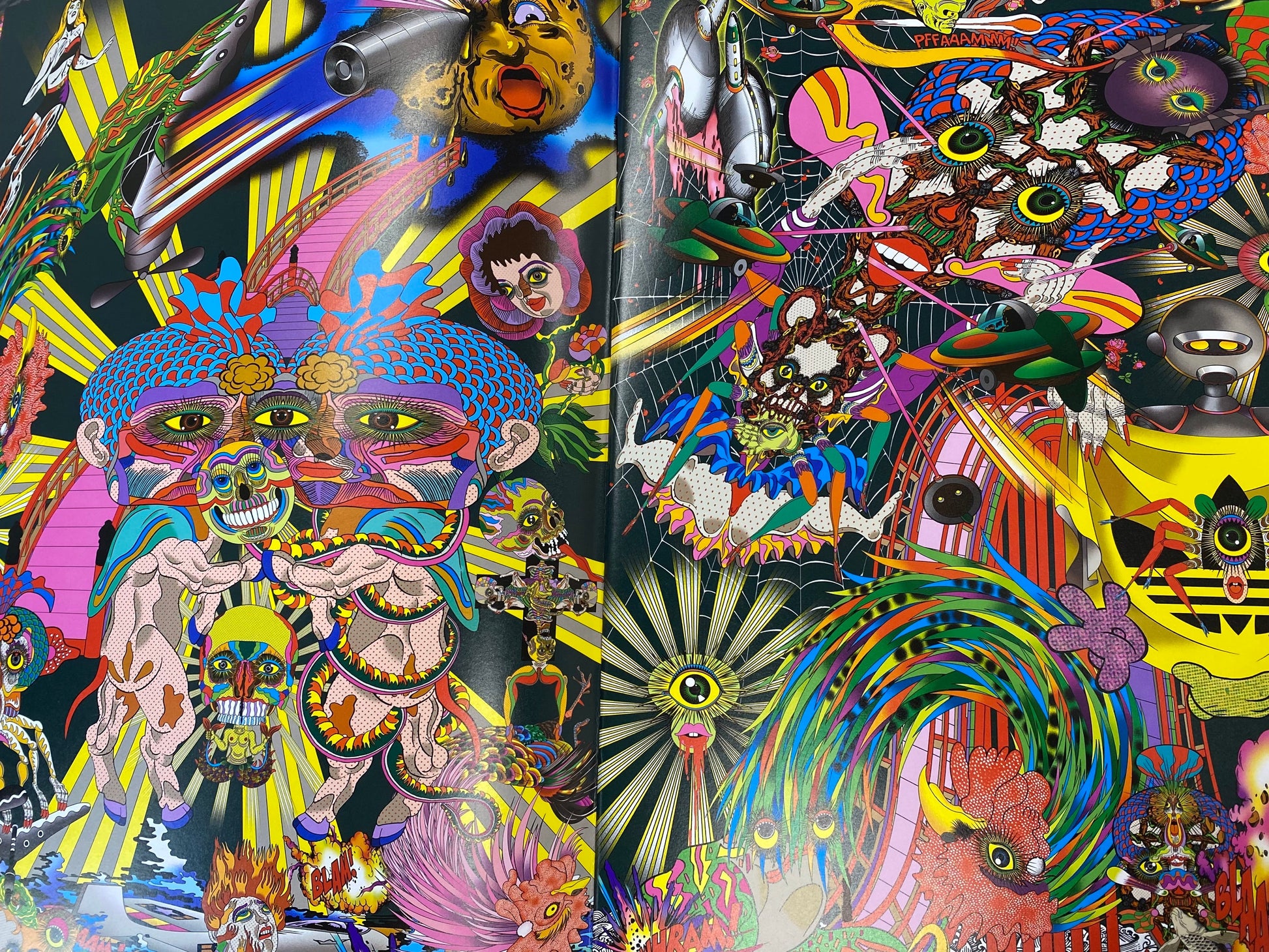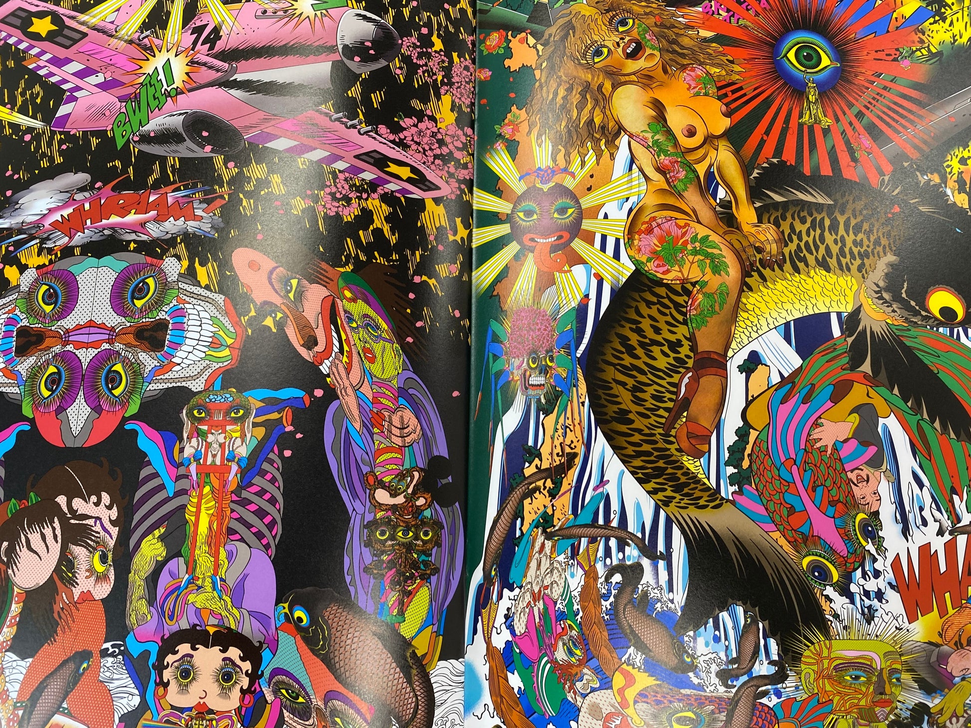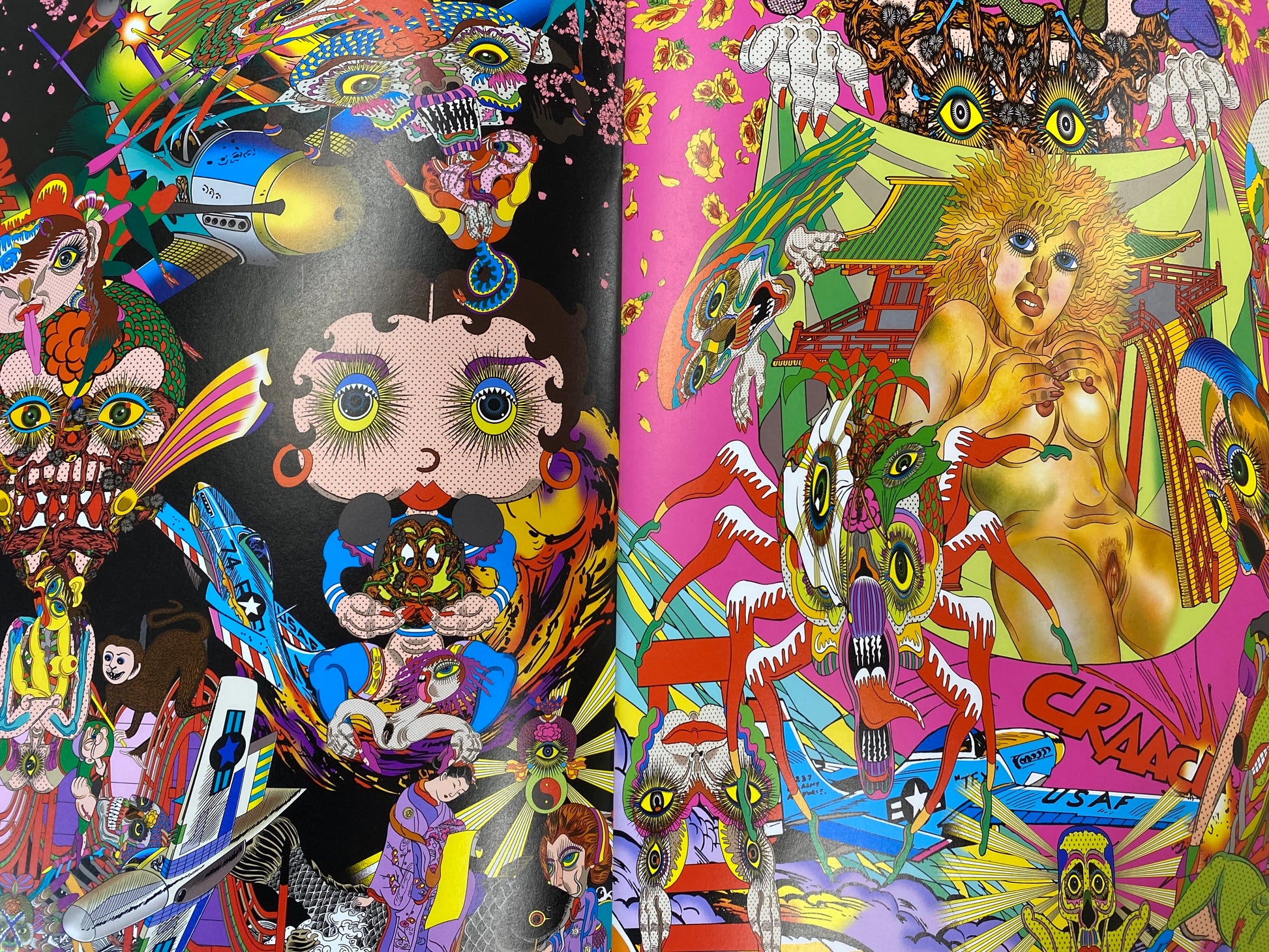 ‘Eyeball Great Adventure’ is a pummelling deluge of work by Keiichi Tanaami, served up with all the delicacy of a fire hose. The large-format book delivers loads more of Tanaami’s customary, refreshingly outlandish and profane visual imagery featuring skulls, fighter planes, eyeballs, robots, erotic figures, and brain-melting intensity. As one of the leading pop artists of post-war Japan, Tanaami has remained active as multi-genre artist since the 1960s, with works spanning graphic design, illustration, video, and fine art. Psychedelia-inspired forms, electric colours, and classic comic book elements feature heavily in his decidedly reactionary oeuvre. Includes works presented at the solo exhibition “Tanaami × adidas Originals.