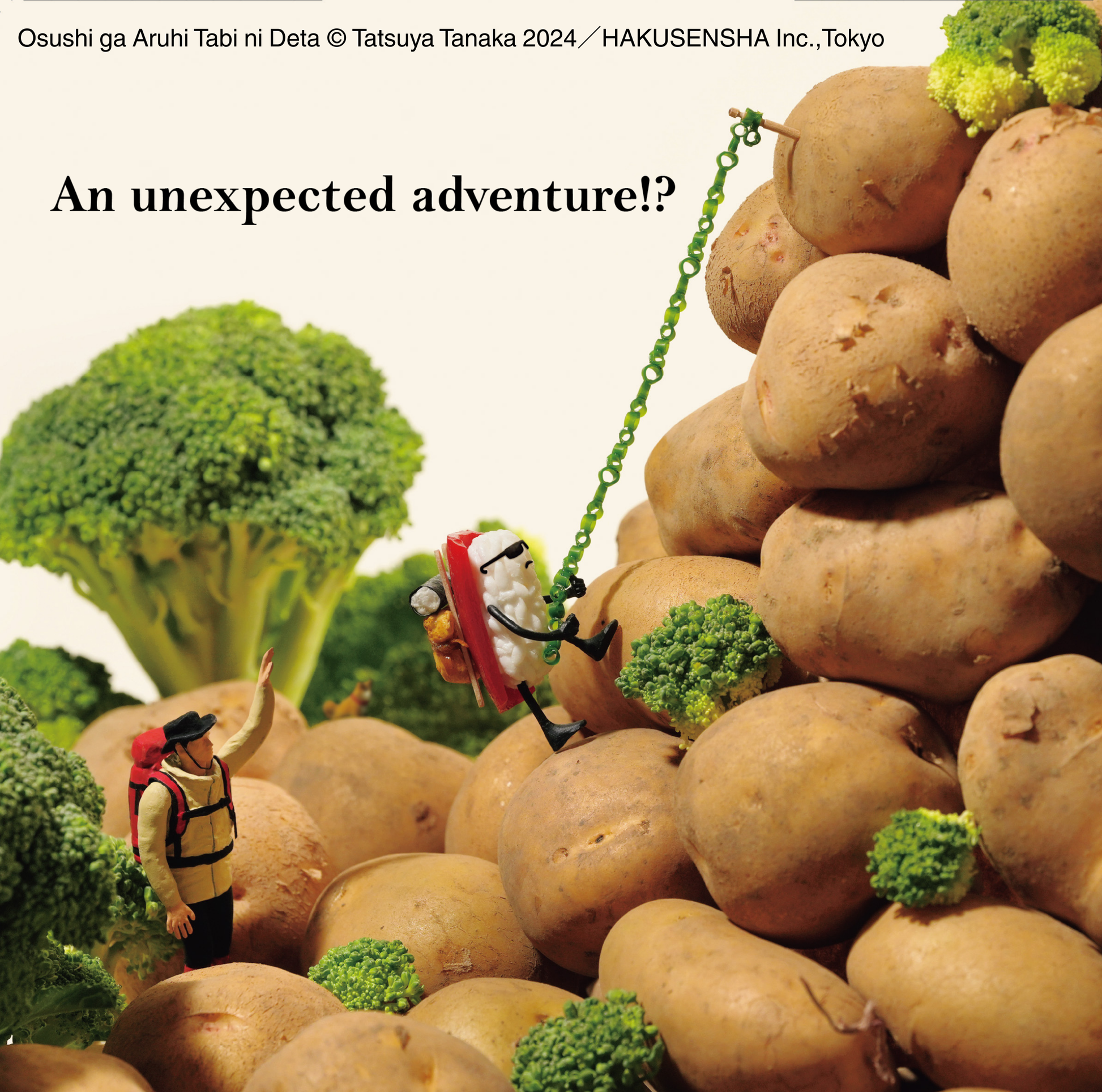 Sushi and his friends are back in the sequel to Tatsuya Tanaka's bestselling picture book Sushi Came to Buy Some Clothes with his new Sushi picture book Sushi Decides to Go on a Trip. On his way to Osushity ("osushi" and "city"-get it?), Sushi finds himself caught up in all sorts of trouble and adventures, from climbing a mountain of potatoes to fighting peanut mummies Brendan Fraser-style during a search for hidden treasure. WIll he ever find his way to Osushity, where his family is waiting for him? With his unique Mitate art and one-of-a-kind sense of humor, Tanaka Tatsuya cannot help but make the reader giggle at the jokes and delight at his touch of reimagining everyday objects as something completely new.
